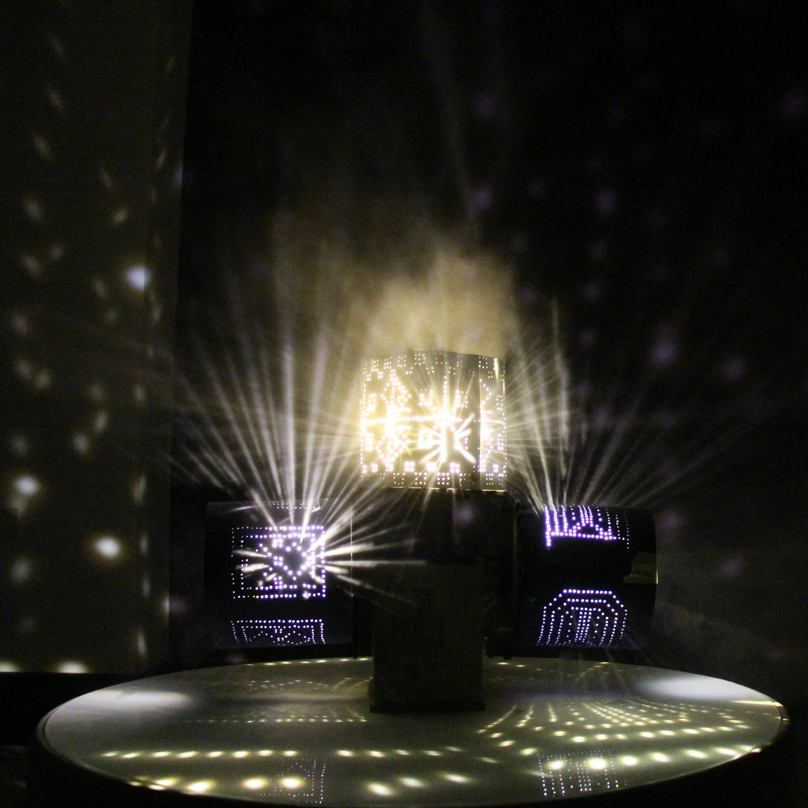 The Lightweaver is a kinetic lighting sculpture, which was developed as a co-creation with the artists, engineers, and inventors from Boston, Amman, and the Al Azraq Refugee Camp in Jordan. The project represents both, a poetic and utilitarian response to everyday life problems in the refugee camp: it addresses the visual austerity of shelters through the design of lamps that function as an educational tool and means for cultural preservation and individual expression. The device employs light and a DIY pinwheel-driven machine to animate stories designed by their creators through a three-dimensional light weaving. The device can be used to personalize the interior spaces of the refugee camp shelters. The Lightweaver translates stories from textiles and calligraphy into a sensory play of light, aiming to preserve cultural memory and inspire hope.